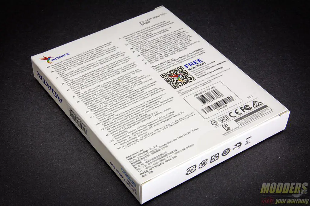[sc:sponsor sponsor=”ADATA” product_link=”http://adata.com/us/ssd/feature/333″ product_name=”SP550 240GB SSD” product_price_link=”http://amzn.to/1VOA3lS” product_price=”$58.99″ ]The ADATA Premiere SP550 comes in a fairly compact box with a windowed preview of the SSD’s front label. Direct access to the free software is provided via QR code at the back.