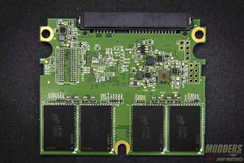 The Silicon Motion SM2256 controller is paired with a 256MB Samsung K4B2G1646Q DDR3L-1600 DRAM populating one socket close to the controller although the PCB has a slot for another one directly behind it. The PCB is also a lot less busy than the SX930 with less components providing power failure protection which is unfortunate although understandable as a cost-saving effort.