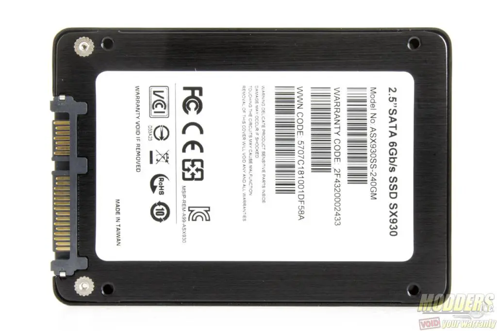 No hummingbirds present here either, although the dark anodized brushed aluminum enclosure certainly fits well with the flame-on-black label of the XPG SX930 series SSDs. At the back, a white label for contrast has the model number, warranty, code and wwn code. Apparently, removing this back label will also void the warranty.