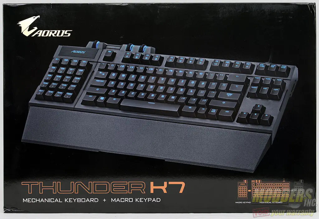The keyboard arrived in a surprisingly large package. Aorus took the time to layout the information on the box very carefully and it is presented tactfully. The packaging shows the keyboard on the front and goes into more details about the features of the Thunder K7 on the back.