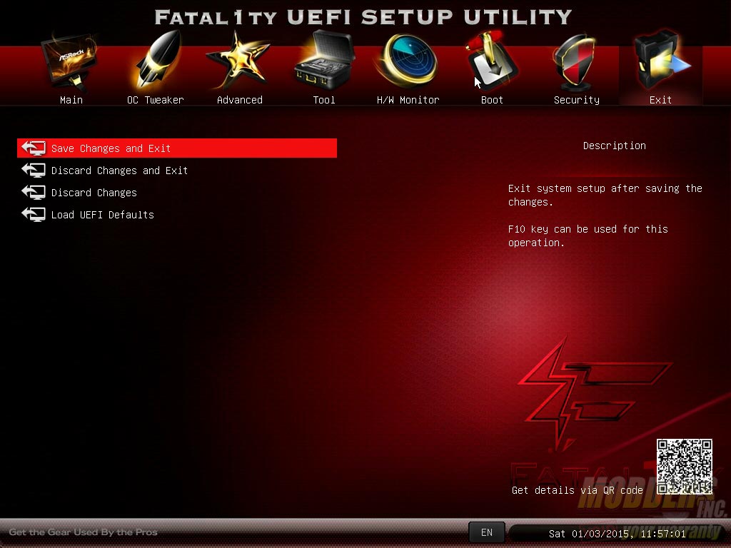 Other than the obvious, the EXIT page also lets the user discard changes made and load UEFI defaults.
