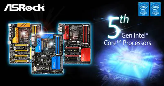 ASRock wants users to know that if they already own an ASRock Z97 or H97 chipset motherboard, their system supports the latest 5th generation Intel Core processors by way of a simple BIOS update. For those who are not up to date on Intel’s product line, the 5th generation Intel core processors are the new Broadwell CPUs which are a 14nm die shrink of the 22nm Haswell “TOCK” architeture. This makes the Broadwell processors much more efficient than their predecessors, although desktop Broadwell-K processors are not available yet in retail stores at this time. At least you’d be ready by then.
