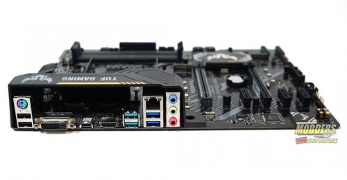 The I/O of the X470 TUF is simple but has everything you need. There are three 3.5 mm jacks for the Realtek® ALC887-VD2 8-Channel High Definition Audio CODEC. A single Realtek® RTL8111H with TUF LanGuard. For USB, there are two USB 3.1 gen 2 Type A and a single Type C, two USB 3.0 and @ USB 2.0. There is also a PS/2 Port for old-school peripherals. Lastly, there is a DVI port and an HDMI port if you use one of AMD’s APUs such as the 2200G. The X470 TUF also supports up to four front USB 3.1 gen 1 ports.