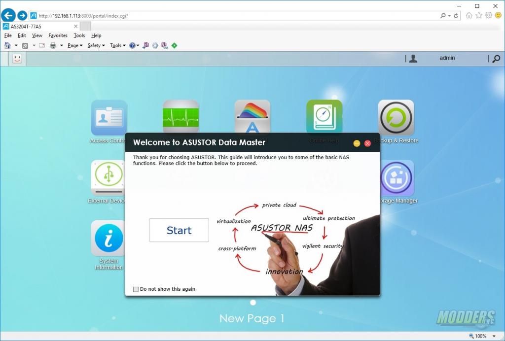 ADM is the management interface that you will use to manage and monitor the Asustor AS3204T. The management interface is presented as a web page and is accessed through a web browser using the IP Address of the NAS. When you log in for the 1st time, you’ll be presented with a users guide that will introduce you to the functions of the NAS.