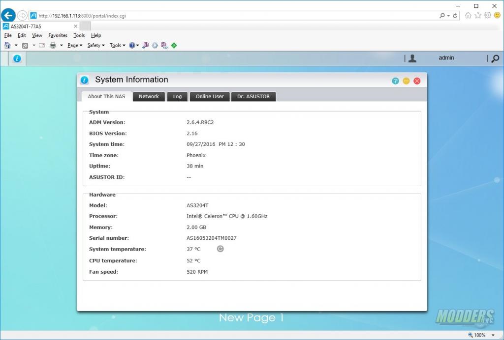 System information give you detailed information on the NAS hardware and network configuration. You can also view the NAS logs. For troubleshooting there is Dr. Asustor. Dr. Asustor allows you to execute diagnostics that can be sent to support for troubleshooting.
