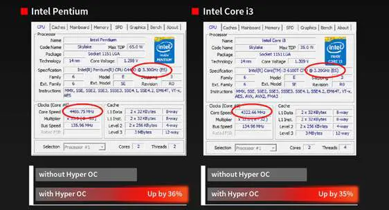After ASRock, ASUS and MSI announced that some of their motherboards will feature non-K Skylake overclocking via UEFI update, manufacturer Biostar has decided to join in on the fun with their “HyperOC” which also allows for BCLK adjustments on non-unlocked Intel Skylake CPUs. Biostar’s HyperOC enables overclocking even entry-level CPUs such as 6th Gen Pentium G4400 or Core i3-6100T for maximum value. Under Biostar’s own testing on air-cooling, the Pentium G4400 was able to achieve a 36% performance increase from 3.30GHz to 4.48GHz while the i3-6100T was able to reach 4.32GHz from 3.20GHz for a 35% boost. The CPU-Z screenshots provided by Biostar are rather small but the results are visible and impressive. Results obviously may vary depending on the CPU.