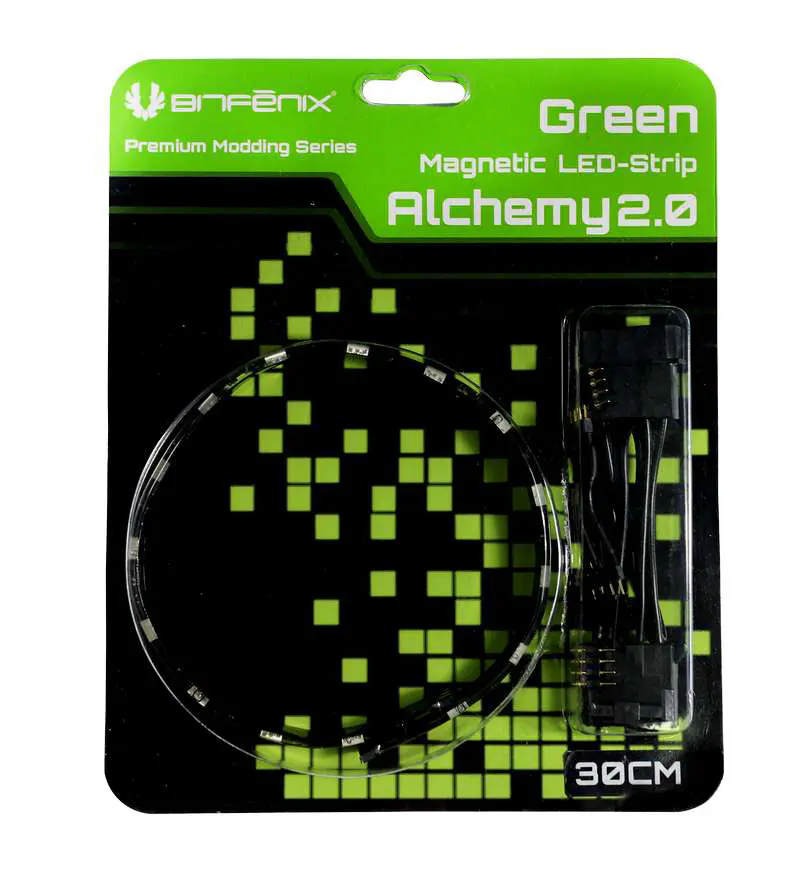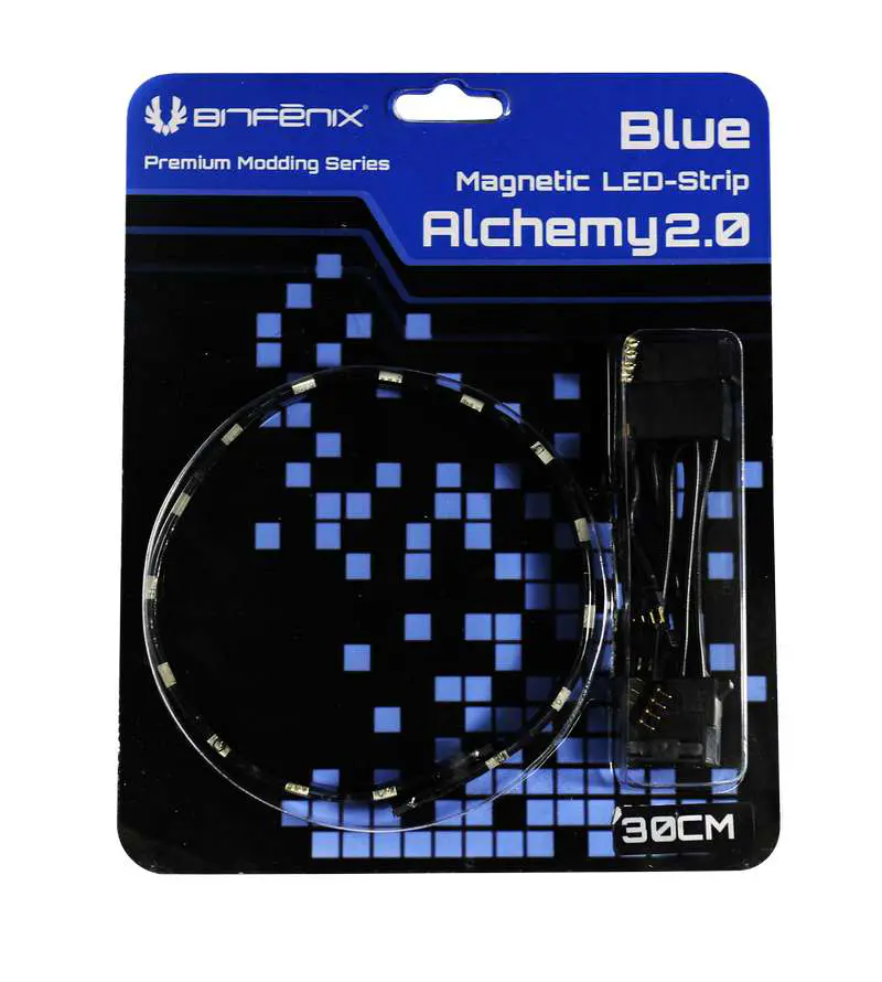 - Thanks to the flexible PCB carrier Alchemy 2.0 magnetic LED strips attach to uneven or round steel parts and can be installed around 90 degree angles reaching from the front of the case, to the bottom and then rear.
