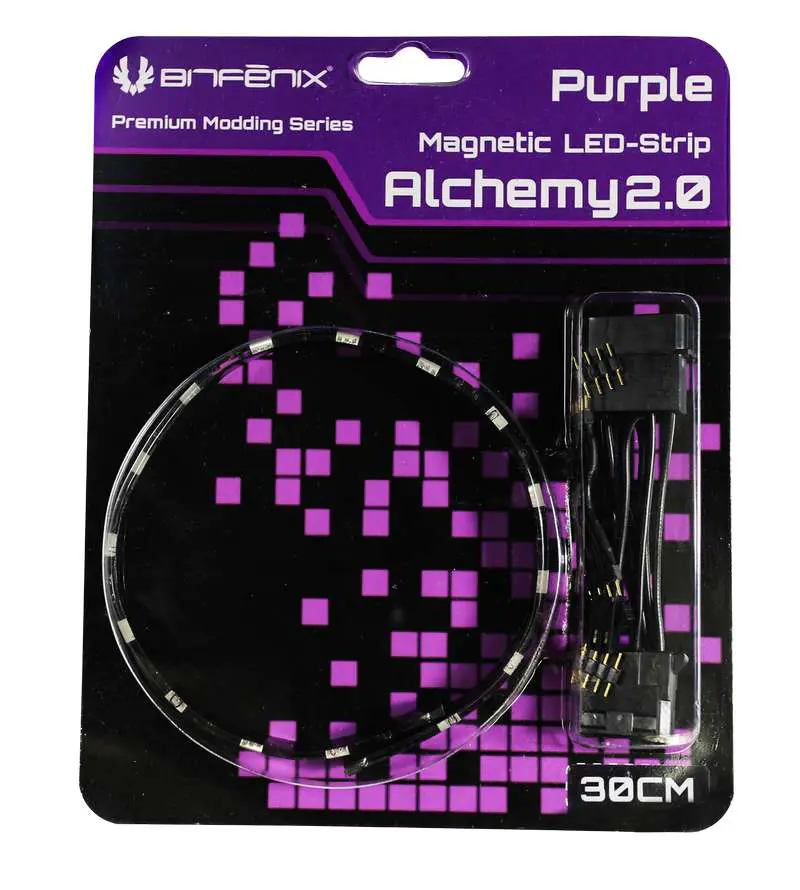 The new Alchemy 2.0 LED strips are available in five color options: purple (new by popular demand), white, red, blue and green (now fine-tuned to match NVIDIA green). Users can choose between different length options starting with a 12cm (4.75″) with six LED chips inside and three magnets, 30cm (11.8″) with 15 LED chips and six magnets as well as a 60cm (23.6″) version with 30 LED chips and 12 magnets.