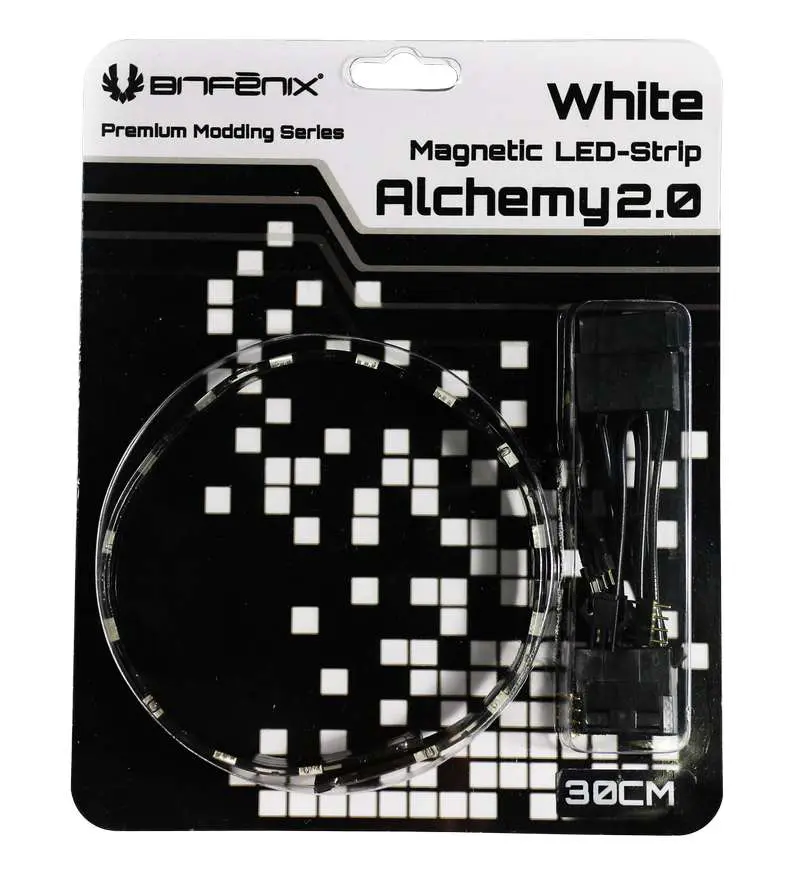 First previewed at Computex Taipei, BitFenix’ updated Alchemy LED strips are now much easier to install more than ever. Instead of using adhesive, the new Alchemy 2.0 LED strips have embedded magnets (sintered ndFeB) so they are easier to install inside most cases or even components such as radiators and power supplies. What about cases that are non-magnetic? Well that is what the original Alchemy 1.0 LED is for! Both original Alchemy and Alchemy 2.0 LED strip uses 5050 SMD Tri-LEDs with a brightness of 60 lumens (give or take 10%) and has a color rendering index of 80. Each LED strip is coated with high clarity polyurethane and is daisy chainable with each other to create longer strips.