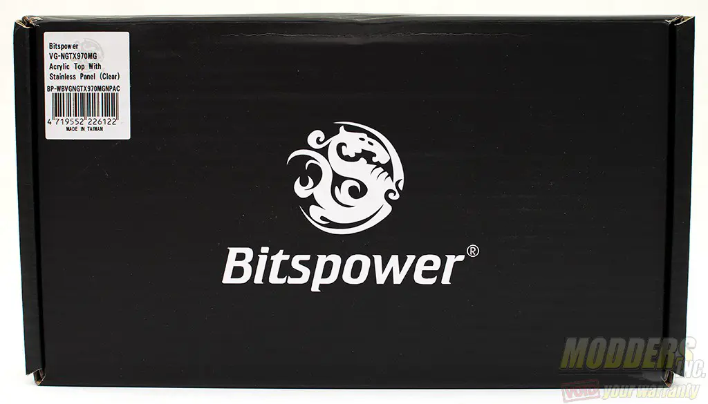 The water block comes shipped in a medium duty cardboard box. There is not any flash or flair with their packaging and the Bitspower logo and a small tag with the product name and part number are all that is on the outside of the box.