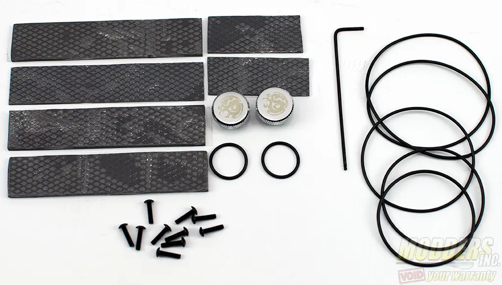 DSC_5214The installation kit includes thermal pads, a replacement O-ring kit, screws, an Allen wrench, and two plugs for directing water flow.