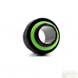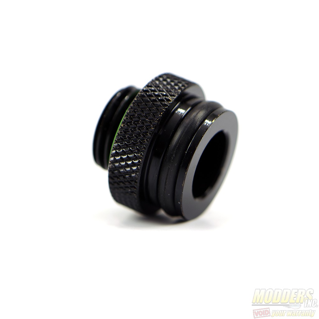 Six fittings are included with this kit. The fittings are designed to connect the water distribution block with the three other blocks that are included. The fittings are knurled to ease with installation and since they can be hand tightened, it should reduce the chances of cracking the Acrylic blocks. The side with the green O-Ring is screwed into each of the blocks and the distribution block is pressed onto the other side.