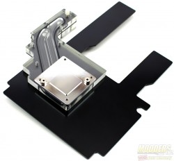 The base of the VRM block is nickel plated and polished. Some light machining marks are visible. For those with the EVGA X99 FTW motherboard, a second set of screw holes are provided. The nuts attached to the bottom of the VRM block need to be moved to the second set in order to facilitate installation on the FTW motherboard.