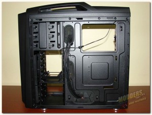 Speaking of Video cards, with the HDD cage in it’s factory configuration you will be limited to only slightly over 11″ of a video card. Now, if you want to install one of the latest monster cards, you will have to remove the top HDD cage side panel.