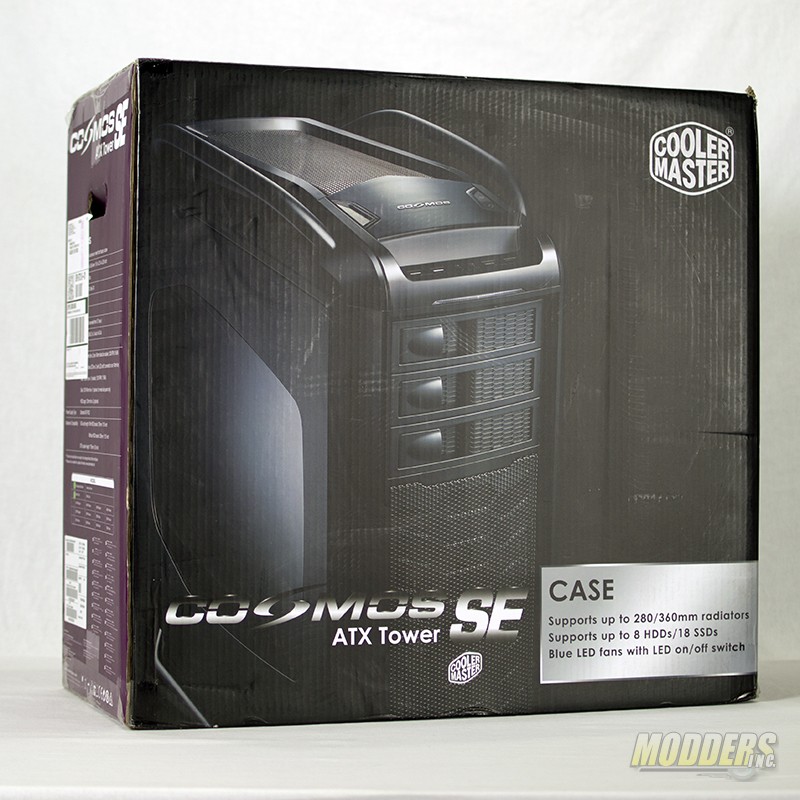 Cooler Master doesn’t use elaborate designs on the packaging of the Cooler Master Cosmos SE. The box contains enough information to allow the person purchasing the case to get a good idea if this is going to work for them or not. The front of the box shows a a simple picture of the Cooler Master Cosmos SE while the back of the box goes into more detail with detailed information on the Cooler Master Cosmos SE.