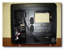 Looking at the inside of the HAF XM it is plain to see that there is a lot of room to play around with. Cooler Master added grommeted cable management holes in key locations to help route your PSU cables with ease. With the back side panel still on you can see that there is plenty of depth behind the motherboard tray for clusters of cables. We will discuss the HAF XM’s other components as we go along.