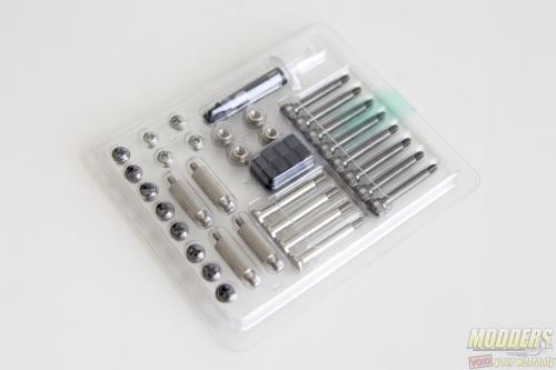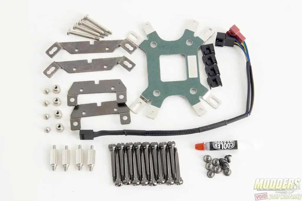 Aside from the mounting accessory set, bundled with the MasterLiquid Pro unit itself are a pair of MasterFan Pro 140 Air fans and a noise dampening gasket. The mounting accessory kit also includes a PWM Y-splitter, a small tube of thermal compound and radiator mounting screws.