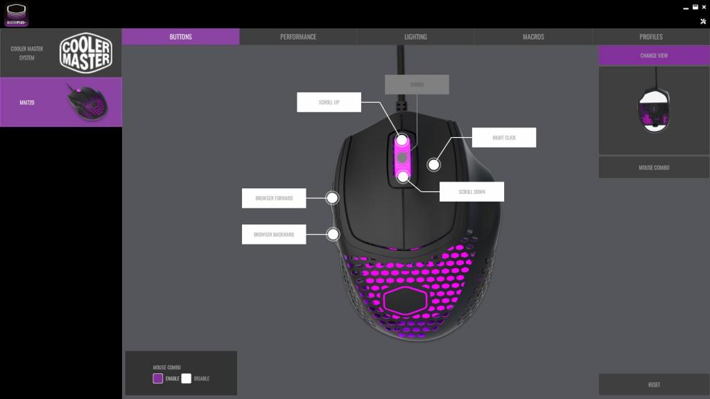 Customization of the MM720 is done from MasterPlus+ software by Cooler Master. Here we can customize buttons and adjust performance as needed.