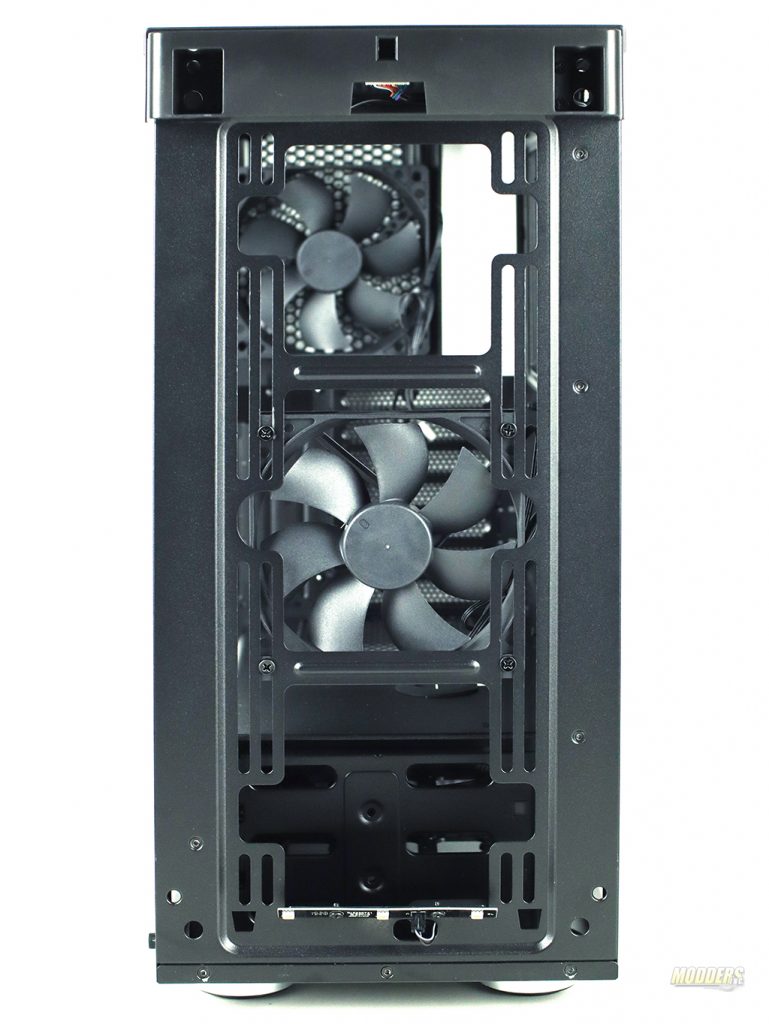 One of the included Corsair fans is mounted on the back of the case and another fan is mounting in the front of the case. These fans can be removed and replaced with either radiators or different fans depending on your preference.