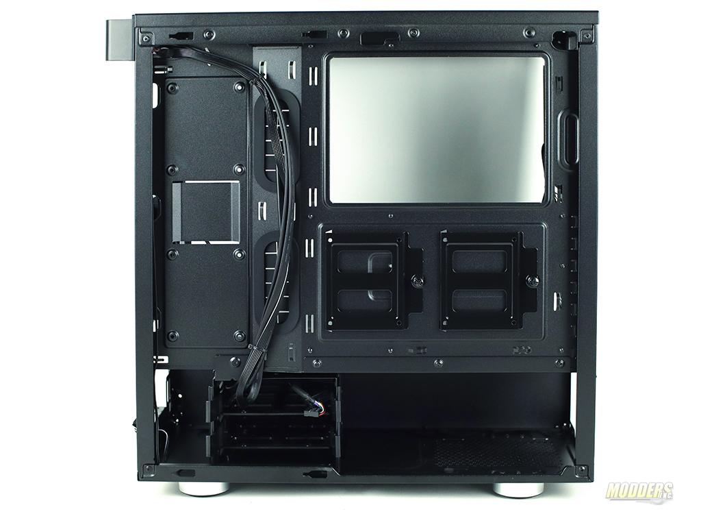 In this case, there is only one window. My sample came with tempered glass and it had a plastic protective sticker on it. Tempered glass has a black outline of a square on the inside. The right side door of the case is made from rolled steel and it does not have any sound dampening foam at all. The quality of finish of the steel side is fair however with heavy scratches or bumps it would be hard not to see blemishes.