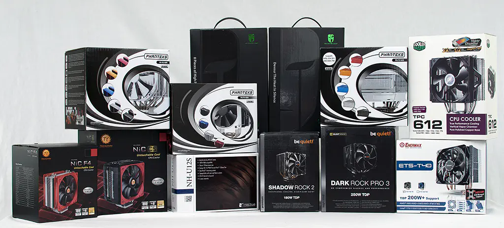 The evolution of the CPU has forced manufacturers to change how CPU cooling is approached. There no single correct way, but there are various options, some options are extremely simple while others can be rather complex. In the market today, there are various options for cooling that address the same thermal issues. Custom built closed loop water cooling, All-in-One water cooling, phase change cooling and various sizes of air coolers are available. I put out a call to our vendors to send me some air cooler for a round up. I did not specify size, shape, number of fans, or price; just that it had to be air cooled. Some vendors sent one CPU cooler while others sent three. The coolers that you will see in this article are from Thermaltake, Cooler Master, Phanteks, Deep Cool, Noctura, BeQuiet!, and Enermax.