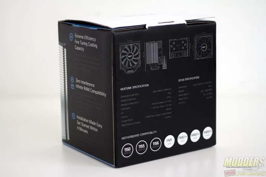 [sc:sponsor sponsor=”CRYORIG” product_link=”http://www.cryorig.com/h7_us.php” product_name=”H7 CPU Cooler” product_price_link=”http://amzn.to/1VD2ZgU” product_price=”$34.99″ ]CRYORIG has a uniform packaging for their coolers, having a black and white color theme with blue accent so the H7’s box looks similar to the previously reviewed C7 low profile cooler, albeit larger. Specifications are printed at the back including measurement of dimensions which is essential for anyone buying this cooler at the store.