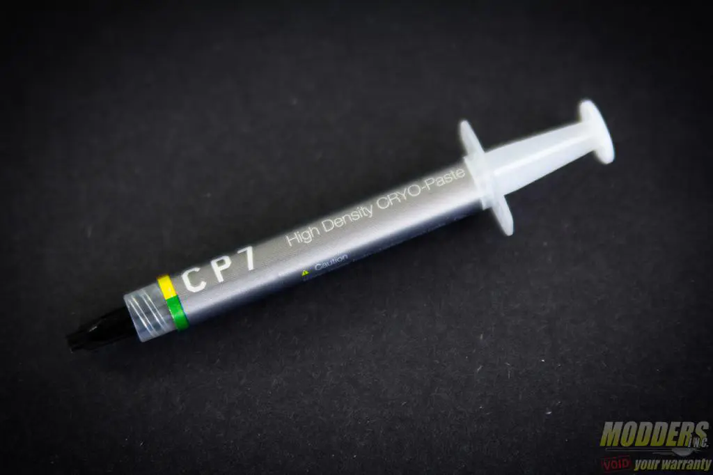 A full-size CRYORIG CP7 thermal paste is also included in the accessory pack as well as documentation which includes an English and Japanese installation manual with an alternate German and Polish version, as well as a product registration card completely sealed in an anti-static bag.