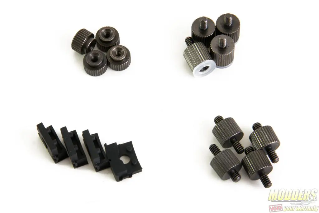 The bundled CRYORIG XF140 fan comes pre-installed with its own set of fan clips and one more set is included for users who want to add a third fan in a pull configuration. The corner mounts for the bundled fan have built-in padding for vibration absorption and an extra set is also bundled for the third optional fan. Also included is an alcohol pad for cleaning the contact surface prior to installation.