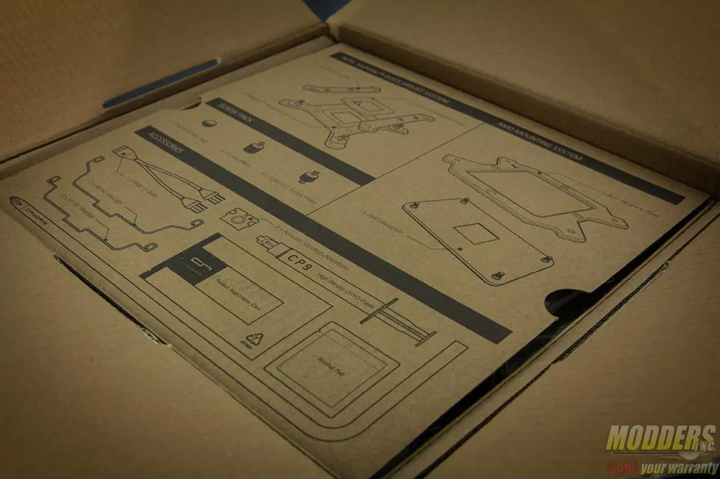 The R1 Ultimate heatsink itself comes cradled inside the center with folded cardboard on all four sides and with the 140mms fan pre-installed. The accessories are stored in a separate box on top and individually packaged inside.