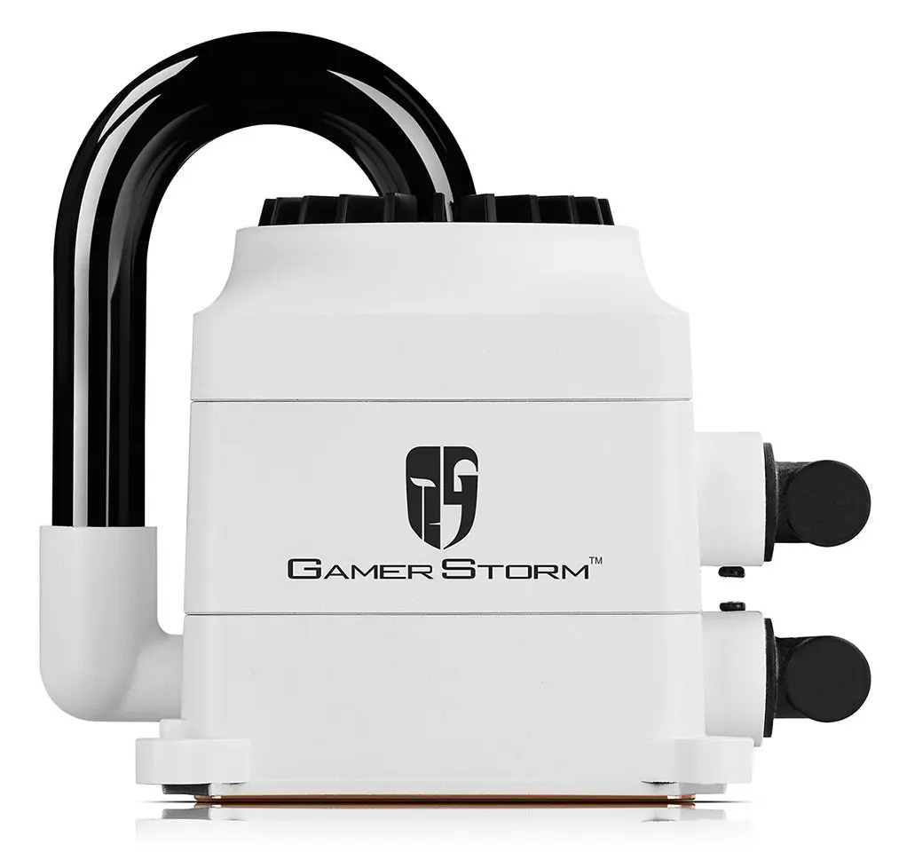 Deepcool recently showed off the latest version of their Captain 240 liquid CPU cooler now sporting a white and black color scheme. This liquid AiO CPU cooler was previously reviewed here at Modders-Inc and received our Recommended Hardware award. The reactor-style pump looks alive as it glows in a breathing LED at the center. On the original Captain 240, it was a red LED but on this new version, it appears to be a white LED on the reactor. The fans also sport a matching black and white theme with the fan blades and inner frame colored white while the remainder of the frame clad in black.