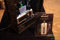 One sure thing to catch the eye is a case mod. Present at the suite was Bill Owen’s signature Tristellar case mod featuring a blue and white color theme with the new helix reservoir mounted on it.