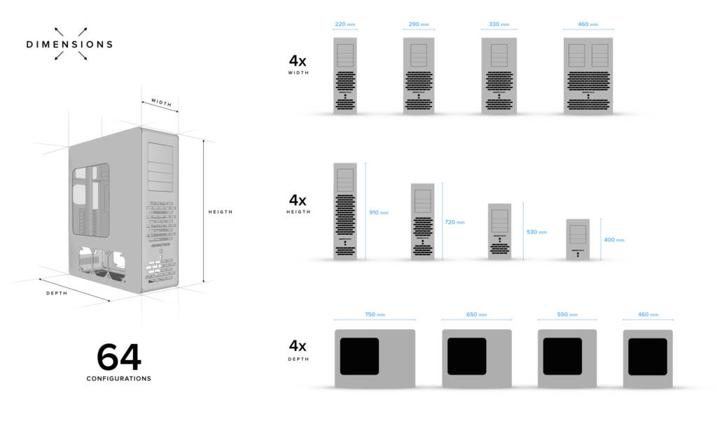 If we think that a PC Case can be considered as a furniture, we can’t simply offer 2 colors options and 3 models covering the mass market request, we’d like to offer a Limited Edition product for every single customer, able to enter in every single space where it will go and integrate in perfectly with the other furniture.
