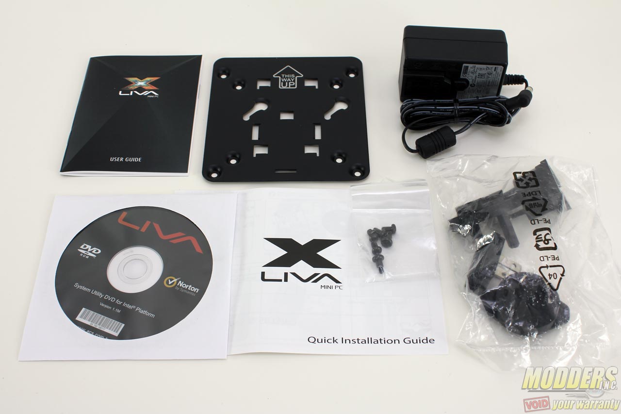 Inside the box, the top compartment houses the new Liva X unit while the bottom compartment contains the accessories which include a user guide, power adapter with four different localized plugs for North America, UK, EU and German outlets. A VESA mount (75mm/100mm) with mounting screws is also included as well as a disc containing drivers. The ECS Liva X does not ship with an OS by default but a Windows 8.1 with Bing version is now available for the same price.