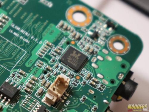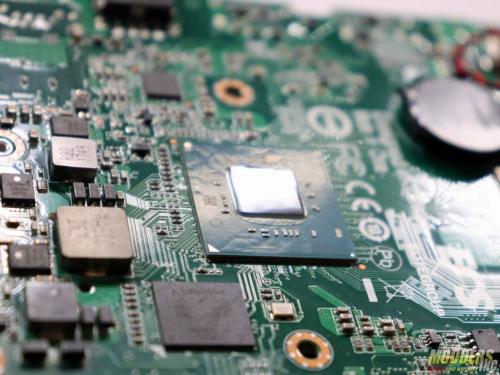 The rear I/O and the bottom panel are constructed of thin steel painted matte black. There’s a bare steel skeleton that surrounds the components, making the LIVA Z2 feel a lot heavier than it looks. Four rubber feet are located on the bottom of the unit. There’s not a single moving part inside the Z2, so unless you install a 2.5-inch laptop HDD into the Z2’s optional drive bay, you can forget about vibration ever being a problem.