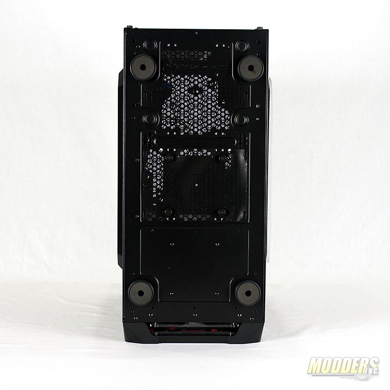 Rounding out the top of the case is the vertical air flow. From top to bottom there is a clear path for airflow to help improve cooling efficiency. The bottom of the case features feet with rubber pad to keep the case where you set it.