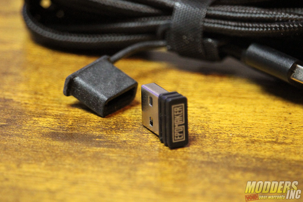 The 2.4G adapter is nestled into a flexible holder to keep it secure and attached to the cable, which I think is a great idea, as it helps to protect it from getting lost over time.