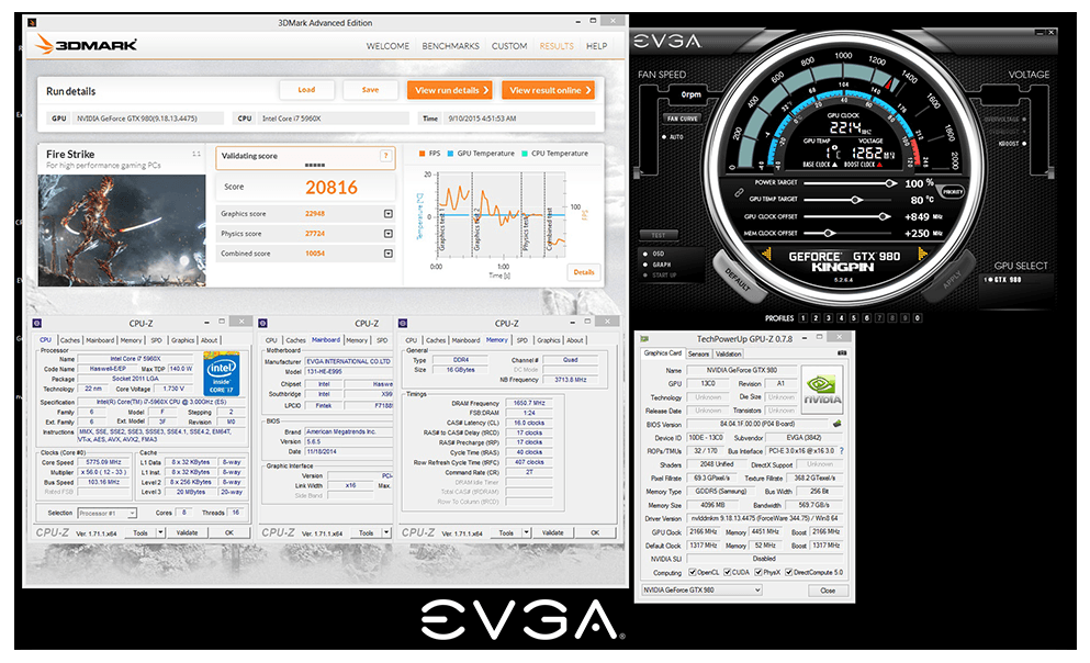 When we say this card is offers unbelievable overclocking, we mean it. Vince “K|NGP|N” Lucido was able to take the GeForce GTX 980 GPU to new heights at over 2200MHz GPU clock and 8900MHz memory clock on Liquid Nitrogen Cooling.