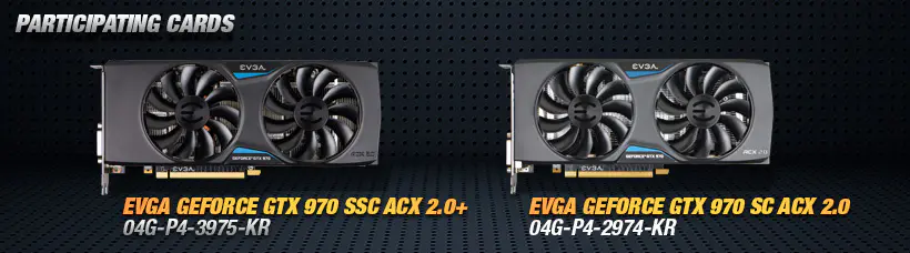 Spring is in the air, and to celebrate EVGA is throwing in a FREE backplate for the EVGA GeForce GTX 970 SSC ACX 2.0+ (04G-P4-3975-KR) and EVGA GeForce GTX 970 SC ACX 2.0 (04G-P4-2974-KR) graphics cards at participating ETAIL/RETAIL for a limited time! When purchased at participating locations, the backplate will automatically be included with the purchase, all you need to do is a simple installation. (Instructions included). A backplate acts like a backbone on your card, boosting rigidity by providing extra support to the PCB, protecting critical components, reduces GPU temperatures, and most of all, looks great! Valid only on products purchased from participating EVGA authorized resellers on or after 4/17/2015. Offer ends 4/30/2015.
