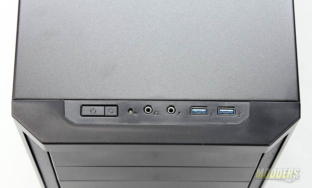 At the top front edge of the Core 3300 is where the controls and input connections are placed. The on/off and reset buttons with white LED’s are here along side your typical audio connections and two USB 3.0 ports.