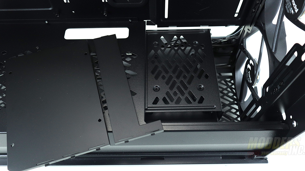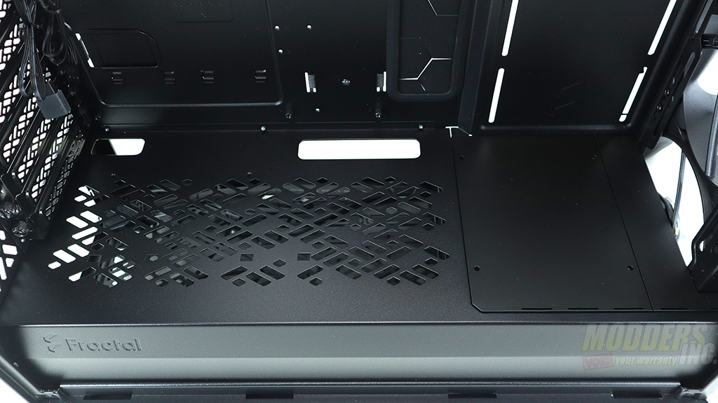 The bottom of the case is conveniently structured to hide all of your Power Supply cables and any other cables you might have in the case. We see this type of shroud concept in a lot of cases and this is now considered to be the norm in a variety of cases. There are a few rubber shroud grommets and some Velcro tabs in the back of the motherboard tray. If you are using SSD drives they could be easily mounted into the slots on the back of the motherboard tray or in the hard drive bay in the lower portion of the case.