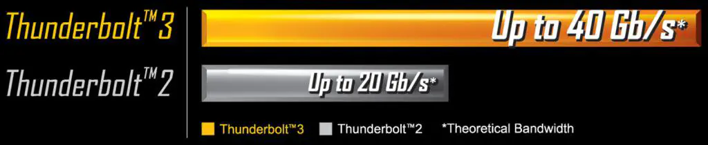 Powered by Intel’s own Thunderbolt controller the new Thunderbolt™ 3 protocol, which is available over two USB Type-C™ connectors on the back I/O of the GIGABYTE Z170X-UD5 TH, brings an unprecedented single-wire bandwidth of up to 40 Gb/s — twice more than the previous generation of Thunderbolt! This incredible increase in bandwidth is also accompanied with support for different protocols such as DisplayPort 1.2 and USB 3.1, which is backwards compatible with USB 3.0 and USB 2.0, opening up a world of new possibilities.