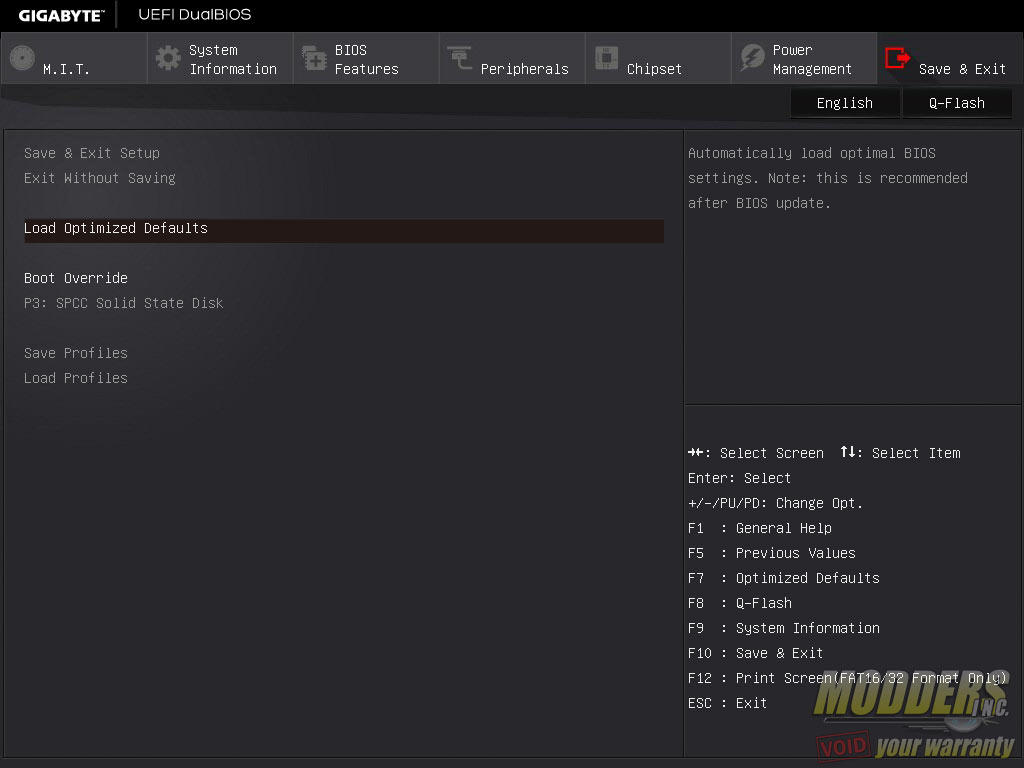 The last page is the Save and Exit page where users can save and exit or save as well as load a profile locally. As with every decent exit page, there is a quick single-click boot override option.
