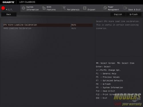 M.I.T.\Advanced Voltage Settings>: This page is for adjusting all the voltage related settings and there are five sub-menus to choose from depending on what to adjust. Advanced Power Settings is where Load Line Calibration is adjusted for the CPU and IGP (AUTO, Standard and High).