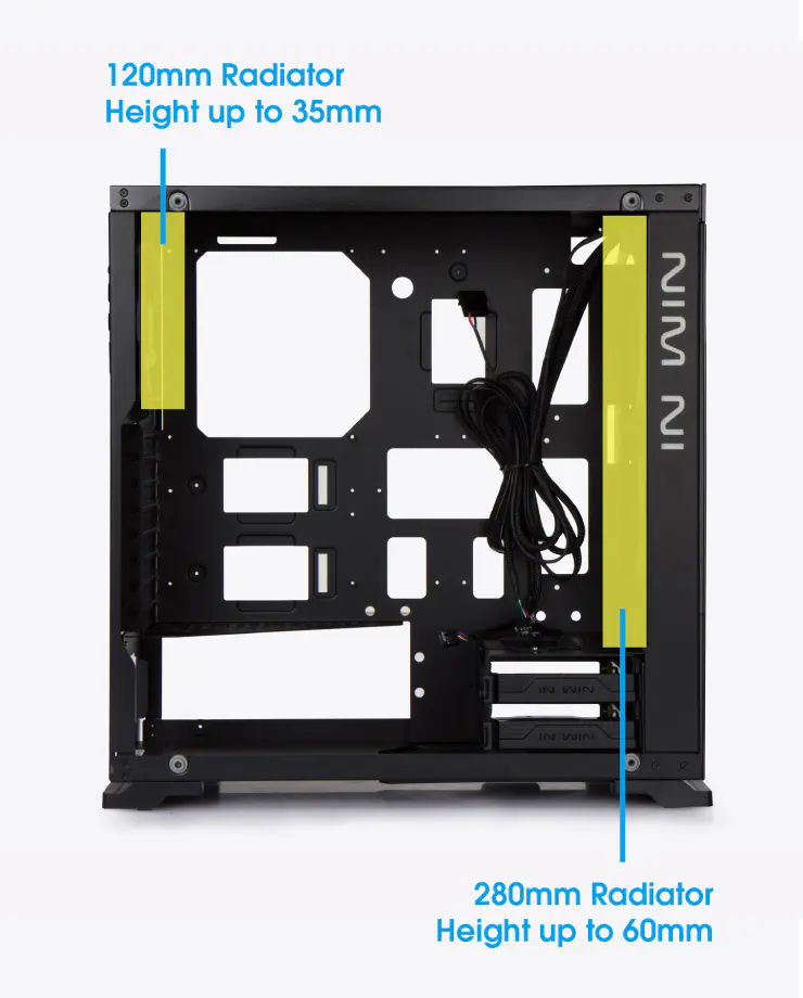 | Thermal Solution | Supports: Air Cooling – Front: 120/140mm Fan x 2 – Rear: 120mm Fan x 1 (Included) – Bottom: 120mm Fan x 2 (Remove HDD Cage) Water Cooling – Front: 120/140/240/280mm Radiator (Height up to 60mm) – Rear: 120mm Radiator (Height up to 35mm) CPU Heatsink Maximum CPU Heatsink up to 156mm (CPU Die Surface to Side Panel) |