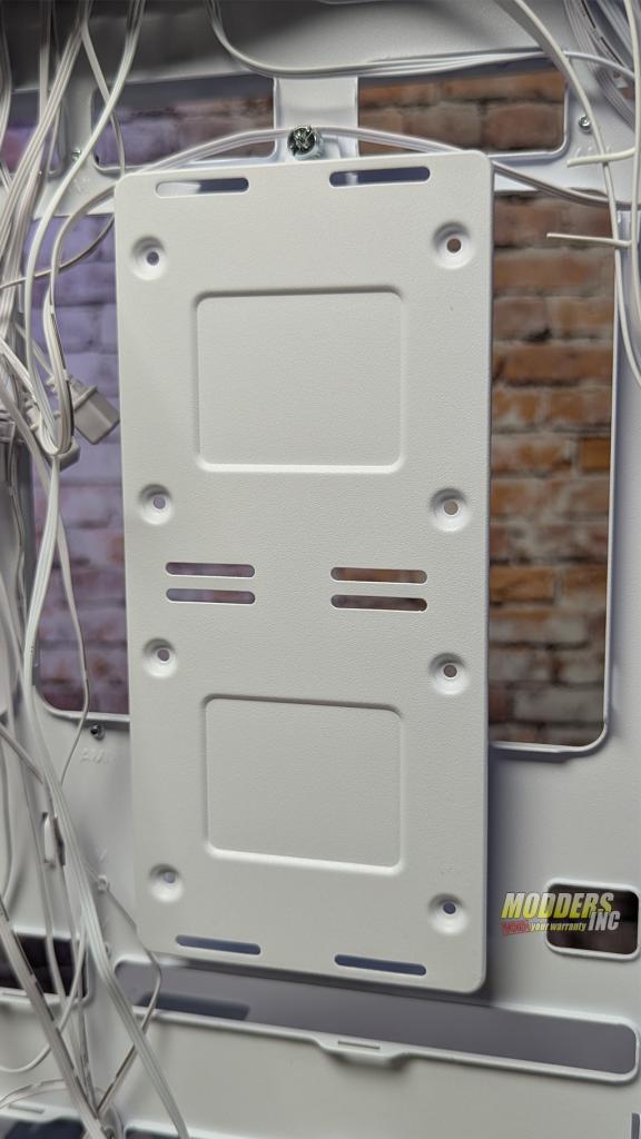 Behind the motherboard support is a bracket that can be used to mount up to four storage devices. Two 2.5 and two 3.5 drives can be mounted at the same time to give you plenty of room for all the games you will never play… but some day you will. If you don’t use any 3.5 drives, you can add 2 more 2.5 drives in the vertical position if you like.