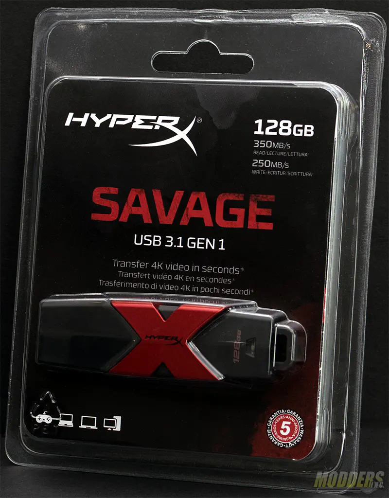The Kingston HyperX Savage drive comes packaged in a simply blister pack. The front clearly shows the drive and the rear of the packaging lists out the specifications and compatibility of the drive. Inside, you’ll find the drive, brief product documentation and a small lanyard.