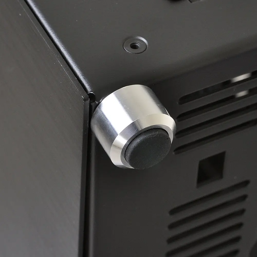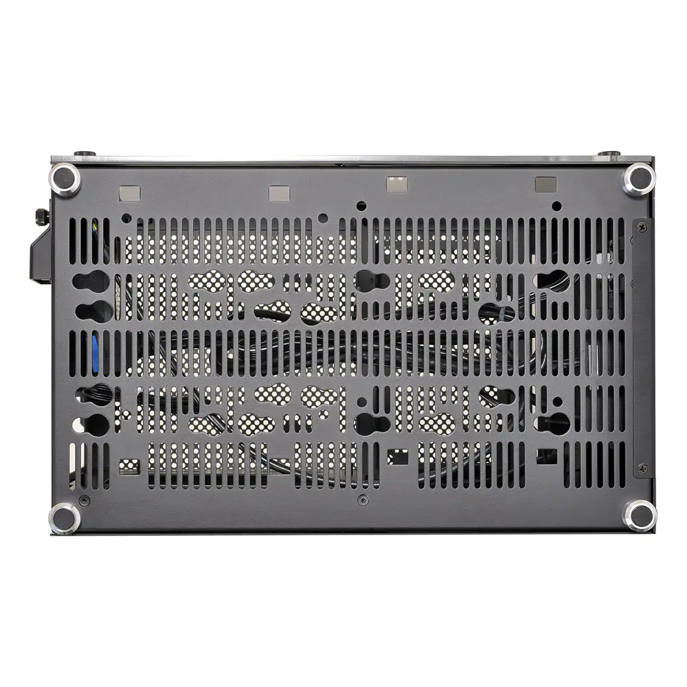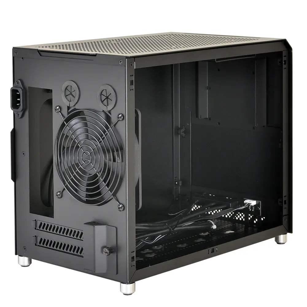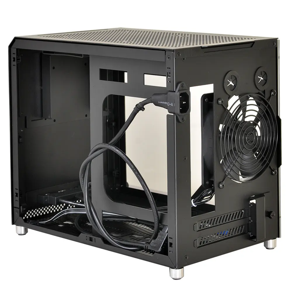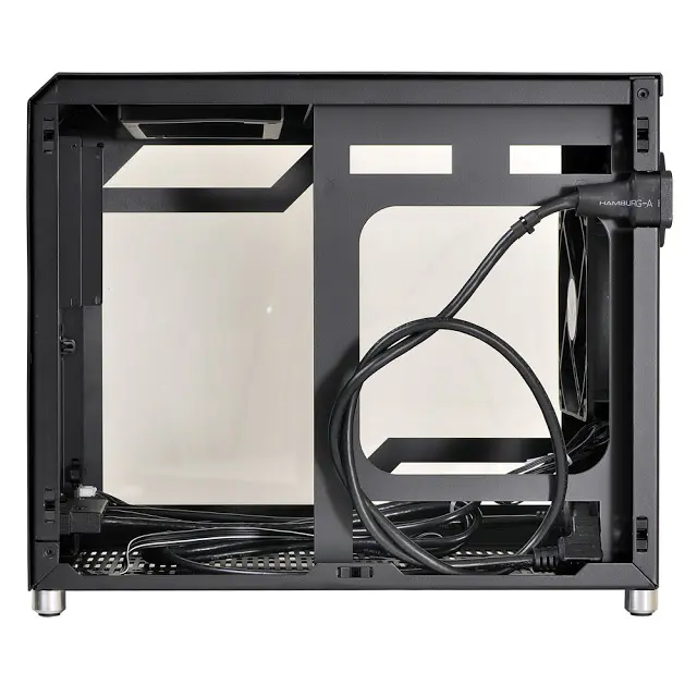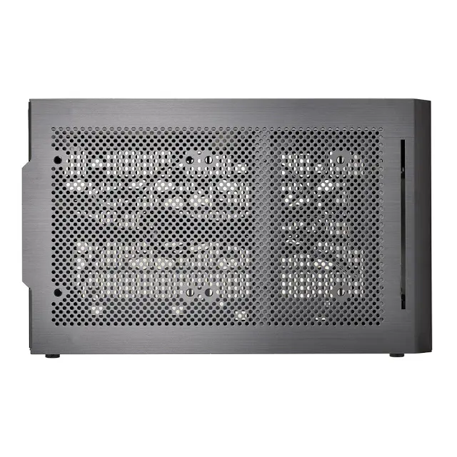 Almost entirely composed of brushed aluminum and acrylic, the PC-Q10WX is robust, beautiful, and minimal. Even its power button is cut from aluminum. Aluminum pegs with rubberized feet provide clearance along the bottom panel for increased airflow. The power button, two USB 3.0 ports, and HD audio ports are available on the front panel, along with a small air vent, for convenient connectivity. The top and side panels pop open and closed securely while the glass wall uses 4 thumbscrews for easy access.