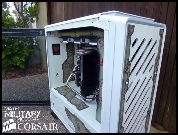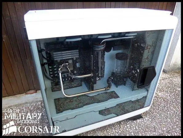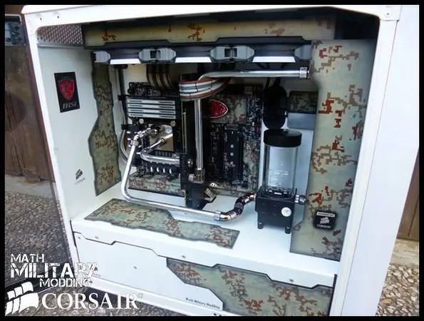 There are many military themed mods out there but French modder Mathieu “MathMilitary” Delsuc is unique in that he intends to bridge the gap between the rugged military aesthetic with sleek modernity and clean functionality. Using a Corsair 760T full-tower case, Mathieu has built a water-cooled system that is steeped in style inspired by US marine digital camo patterns.