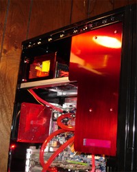 I did some playing with an MI logo on the side optical drive cover. Simply printed the logo out on projector film and used clear coat to hold it in place. The first time through this worked like a charm. I wasn’t able to reproduce it so easily on the second attempt when I tried to do the same thing on the side cover with the extra length for the LCD.