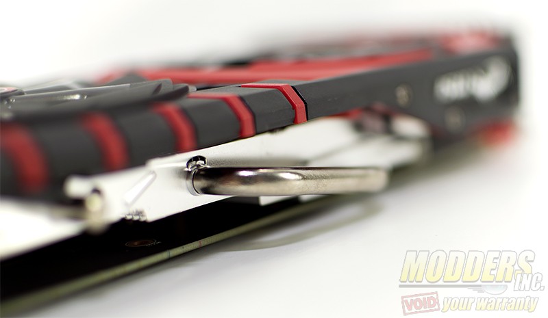 The wider body makes up for the potential cooling loss as the heatsink is slim. This is a benefit for consumers that run SLI. Typically there is very little space between the two cards. Now I am not saying you will have miles between the two cards, but there should be enough space between them to effectively cool both cards. During testing at the stock clock speed of this card, temperatures never went above 55° and the fan speeds, according to MSI’s Afterburner software never went above 40% and the system pulled 186 watts (max) as compared to the R9 270, which had a temperature of 63°, 50% fan speed and pulled a max of 208 watts (max) from the wall.